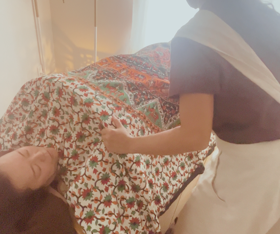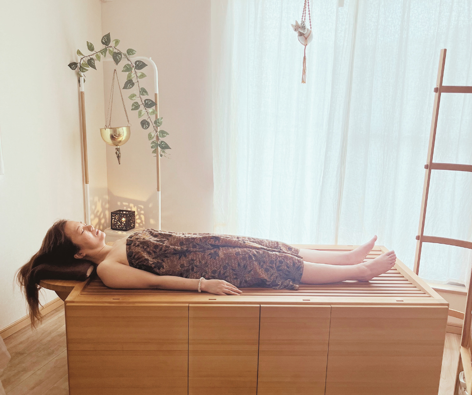 Mukunalなら寝たまま受けられ、腰や体に負担なく、より深いリラックスと発汗を実現します。